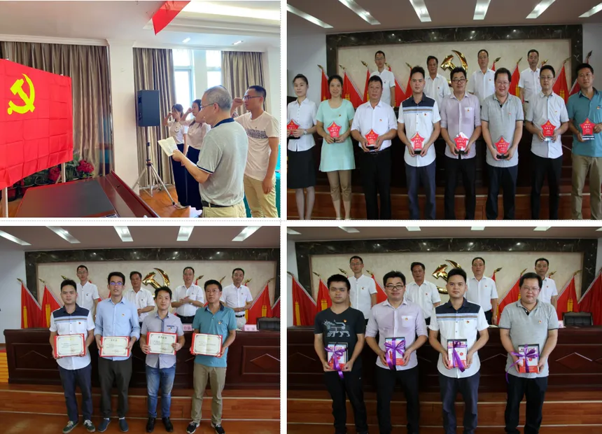 会议表彰了2019-2020年创先争优先进基层党支部、优秀共产党员、优秀党务工作者、抗疫先进个人和“学习强国”学习标兵;4名预备党员进行了入党宣誓;姚杰代表优秀党员、韦义师代表新党员分别作了表态发言。
