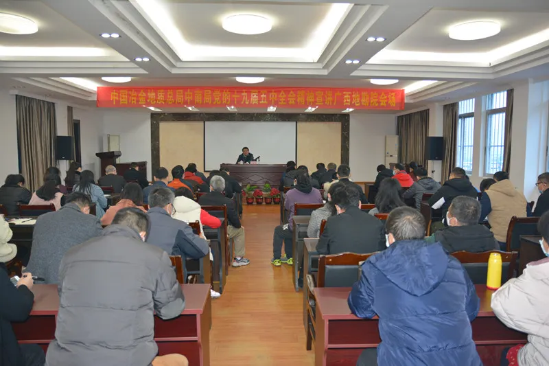 广西地勘院领导班子成员、部门主要负责人、支部书记、职工代表共60人参加了宣讲会。