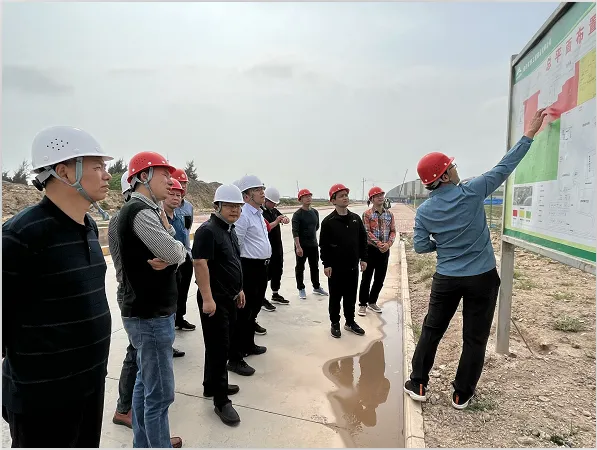 在企沙,山东正元广西分公司负责人带领参观了金川工业园,介绍了金川公司系统工艺及数字化升级项目基本情况,详细介绍了工业园区桩基强夯等基础项目开展情况。