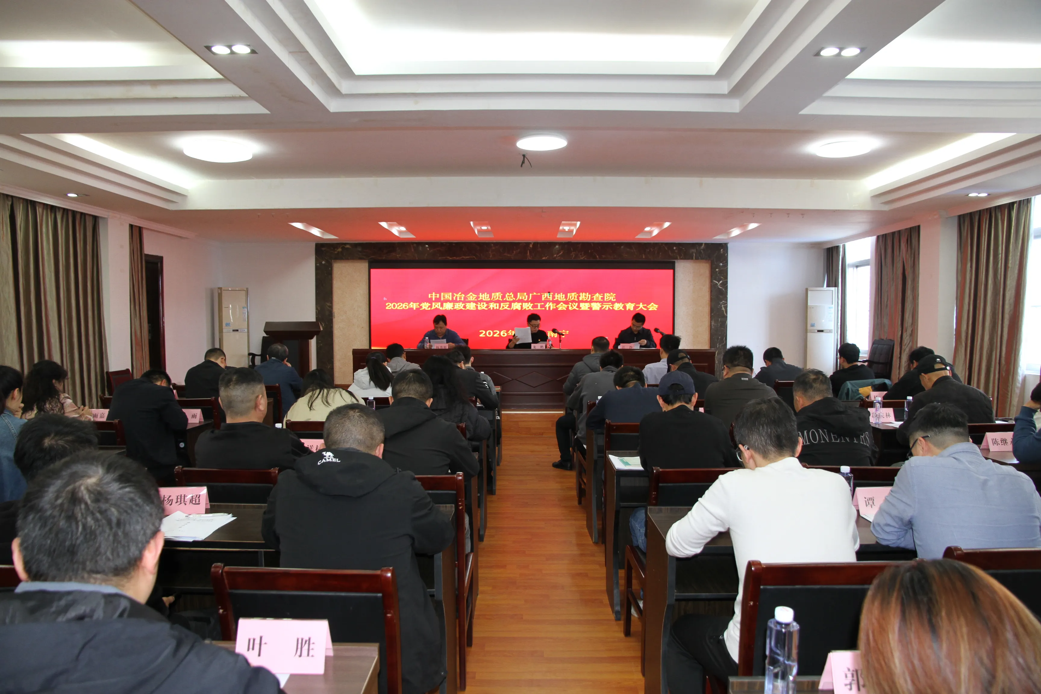 2月6日,我院召开2026年党风廉政建设和反腐败工作会议暨警示教育大会。会议传达学习了中南局(公司)2026年党风廉政建设和反腐败工作会议暨警示教育大会精神,重点传达了中南局(公司)党委书记、副局长、执行董事、总经理方合三的讲话精神和党委委员、纪委书记张韶华所作的工作报告,通报了冶金地质系统2025年查处的违规违纪违法案件,开展警示教育,进一步强化干部职工廉洁从业意识,筑牢拒腐防变思想防线。